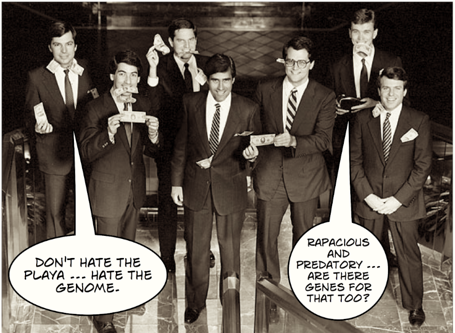 Of course, when it comes to behavior, there is not a distinct line one can cross from normal to abnormal.  Human behavior is complex, multi-dimensional and greatly interpreted through the lens of culture.  Our present culture is highly saturated by mass-marketing, making it easy to distort a person’s sense of “what’s normal” and create demand for consumer products that folks don’t really need (eg. psychiatric diagnoses? medications?).   Anyhow, its tough to know what’s normal.  This is an important issue to consider for those (mass-marketing hucksters?) who might be inclined to promote genetic data as “hard evidence” for illness, disorder or abnormality of some sort.